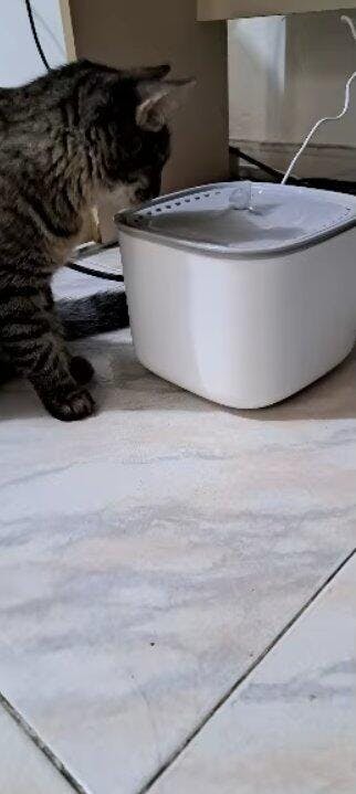 All'inizio, aveva un po' paura di come usciva l'acqua, poi si è avvicinato per toccarla e alla fine ha iniziato a bere da quella fonte. Ci è piaciuto molto, è arrivato velocemente e in perfette condizioni. Per il prezzo, il materiale sembra ottimo, viene fornito con un filtro incluso e non abbiamo avuto problemi a collegarlo e montarlo.